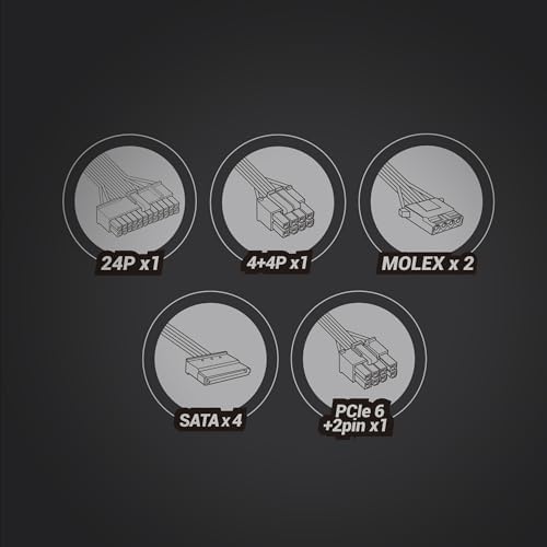 OPTIMISED CABLE DESIGN: The MPIII650 power supply’s cables are flat, black and extra long; combining features that make it easy to install and totally versatile for mounting in any type of case; In addition, it includes the connectors: 1x ATX MB 24 PIN, 1x EPS +12V 4+4 PIN, 4x SATA, 2x Molex 4 PIN & 1x PCIe 6+2 PIN