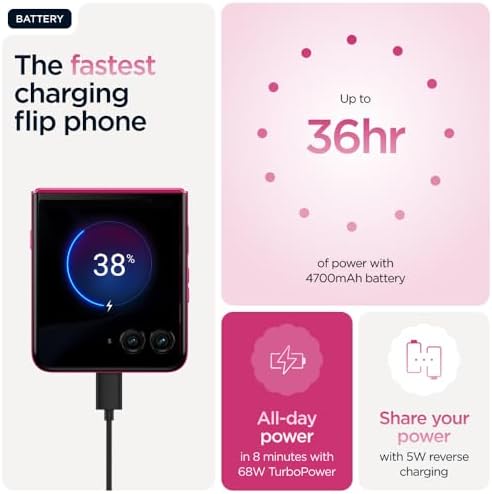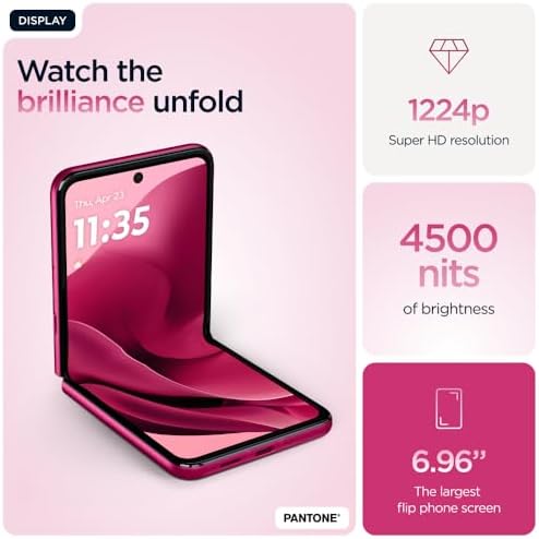 Motorola razr 60 ultra, 17.7 cm (6.96″) Dual SIM Android 15 5G USB Type-C 16 GB 512 GB 4700 mAh, Pantone Cabaret, Moto AI Flip Smartphone, Dual Display, 50MP Triple Camera with Co2 Offset
