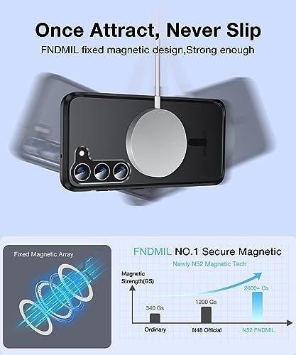 ? 2025 New Design for Samsung Galaxy S23 Case (No.1 Magnetic Design)*Compatibility: ONLY compatible with Samsung Galaxy S23– ?6.1 inch ??*Color: Black Translucent Matte Hard Back and Soft Tpu Silicone Frame—————————————–?? You can always trust FNDMIL? Provide you with master design onlyOur designs should be one in a hundred, we
