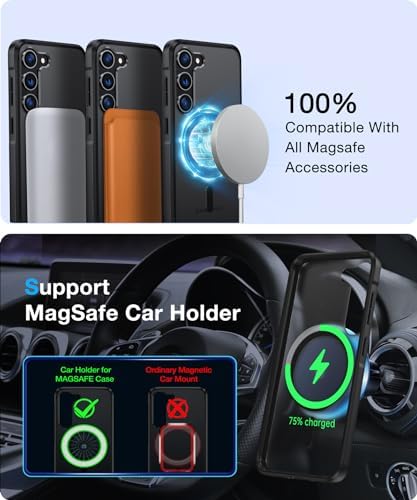 ?Compatible with MagSafe Accessories?Accurate built-in strong N52 magnets offers a strong attach experience and faster wireless charging. You can charge your Samsung Galaxy S23 Case on MagSafe or Qi charger for incredible convenience without taking off case.Warm Reminder: All MagSafe phone cases must be used with the MAGSAFE dedicated magnetic car mount and are not compatible with regular magnetic car mounts