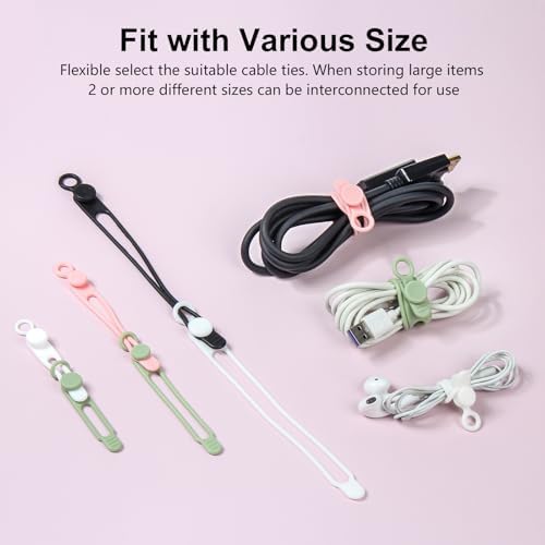 OneLeaf 30Pcs Cord Organizer, Silicone Cable Ties Reusable, Cord Ties for Electronics, Multipurpose Elastic Wire Ties, Travel Essentials for Cable Organizer, Wire Organizers for Fastening Cords