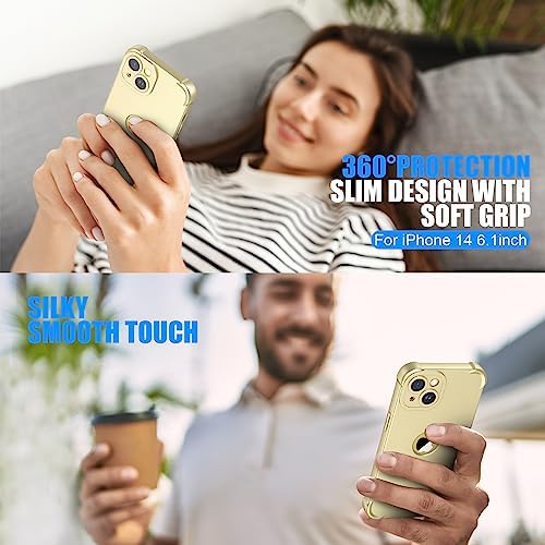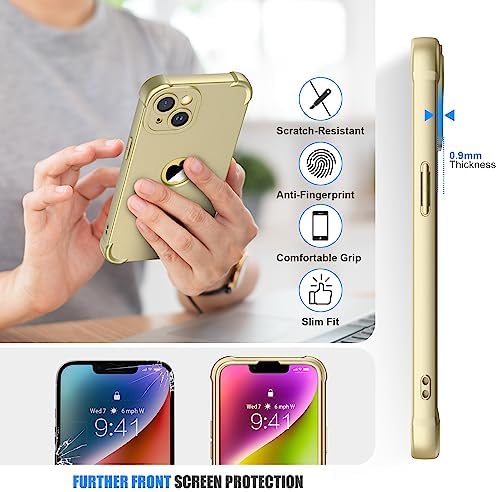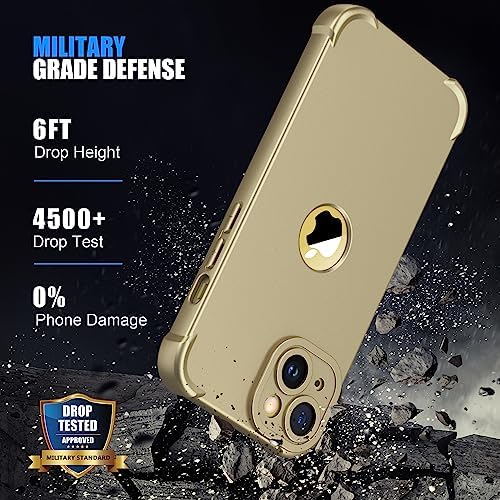 ORETECH for iPhone 14 Case 6.1 inch, with [2 Pack Screen Protector] [Camera Lens Guard] [15FT Military Grade Drop Test] 360° Shockproof Slim Fit Design Rubber Bumper Phone Cover – Gold