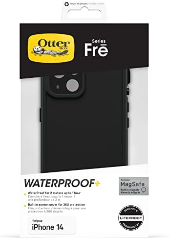 OtterBox Fre Case for iPhone 14 for MagSafe, Waterproof (IP68), Shockproof, Dirtproof, Sleek and Slim Protective Case with Built in Screen Protector, x5 Tested to Military Standard, Black