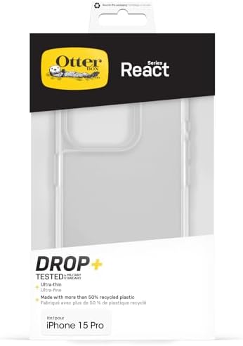 OtterBox React Series Case for iPhone 15 Pro, Shockproof, Drop proof, Ultra-Slim, Protective Thin Case, Tested to Military Standard, Clear