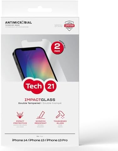 • Tech21 Impact Glass Screen Protector for iPhone 14 / iPhone 13 – Pack of 2