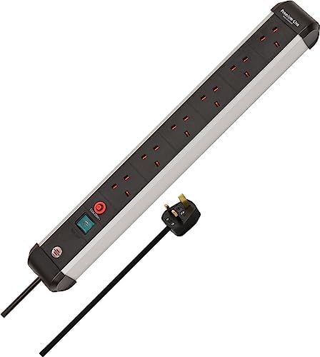 • Brennenstuhl Premium-Alu-Line 6-Way Extension Lead (Power Strip with Safety Fuse Button, 3m Cable, Made in Germany) Black/Silver