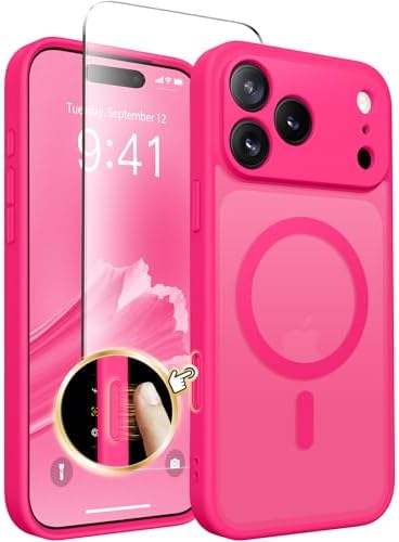 • CAPRARO Magnetic for iPhone 17 Pro Max Case, Upgraded [Full Camera Protection] [Compatible with MagSafe] Protective Translucent Matte Women Girl Phone Case Cover, Hot Pink