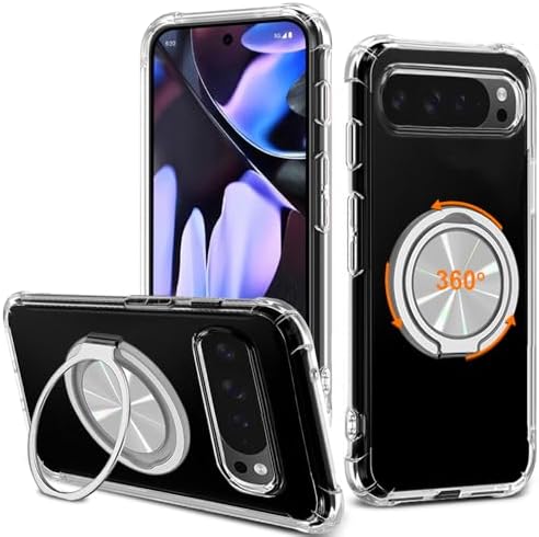 • for Google Pxiel 10 Pro XL Phone Case, 360° Rotatable Ring Holder Kickstand/Stand [Non Yellowing] Transparent 4 Corners Shockproof Protective Cover Case for Google 10 Pro XL 5G 2025 – Crystal Clear