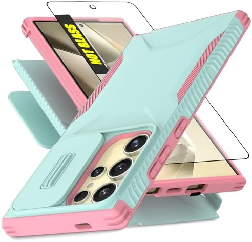 • for Samsung Galaxy S24 Ultra Case, with 1 HD Screen Protector & Slide Camera Cover [Military-Grade] Phone Case Heavy Duty Rugged Shockproof Protective Cover for Galaxy S24 Ultra(Cyan/Pink)