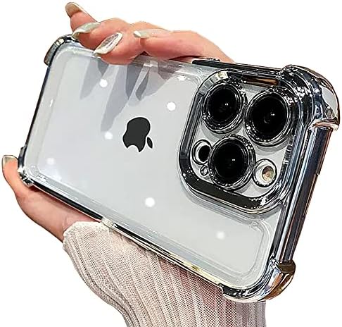 • Casechics Compatible with iPhone Mobile Phone Case, Crystal Electroplated Bumper Corner Protection Transparent Clear Soft Shockproof Mobile Phone Cover (White, iPhone 14 Pro Max)
