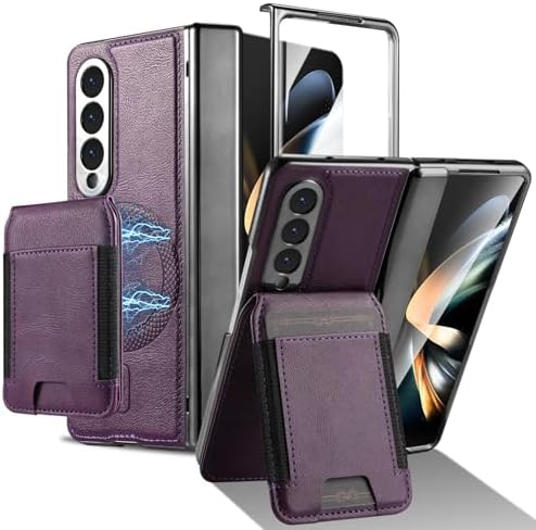 • Smartphone Flip Cover For Samsung Galaxy Z Fold 4 5G Magnetic Detachable 2-in-1 Leather Case with Card Holder, Front Screen Protector & Kickstand – Slim Wallet Cover(Purple)