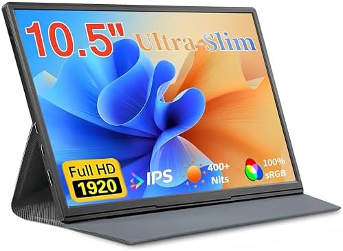 • 10.5″ Portable USB-C Laptop Monitor – 1920x1280P FHD IPS Screen, HDMI, External Monitor for Laptop, PC, Mac, Phone, PS, Gaming, Ultra-Thin Zero Frame with Premium Smart Cover
