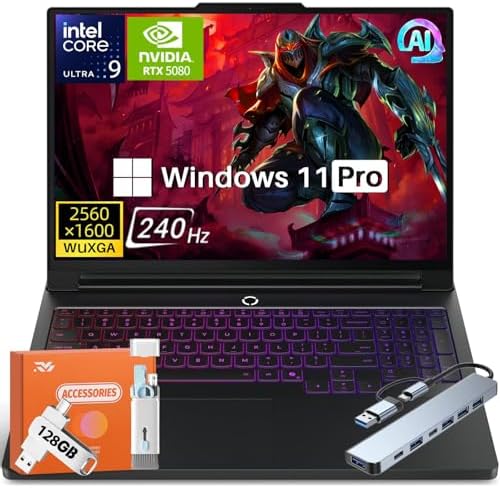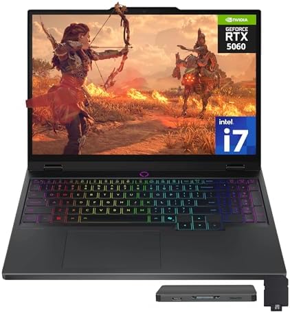 • Lenovo Legion 5 15.1″ WQXGA 165Hz Gaming Laptop, Intel i7-14700HX, RTX 5060 8GB GDDR7, 32GB DDR5, 1TB SSD, 24-Zone RGB Backlit Keyboard, 5.0MP Camera, Wi-Fi 7, Win 11, Black, 512GB Docking Station Set