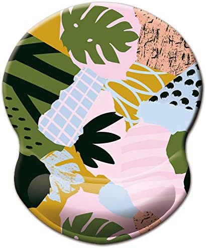 • ITNRSIIET Mouse Pad, Ergonomic Mouse Pad with Gel Wrist Rest Support, Floral Mousepad with Lycra Cloth, Non-Slip PU Base for Gaming Computer, Laptop, Home, Office & Travel, Abstract Leaves