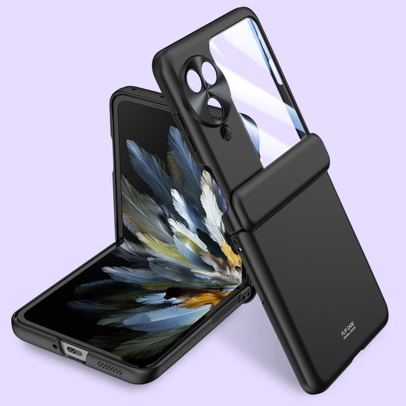 • Smartphone Flip Cover For Oppo Find N3 Flip Case with Front Screen Protector, Ultra-Thin Lightweight Case with Full Cover Hinge Protection Case For Oppo Find N3 Flip(Black)