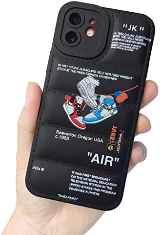 • Ins Hot Off Sports Shoes Brand Puffer Phone Case Puffy Cover Compatible with iPhone 12 6.1 inch, Sneakers White Label Pattern Graphics Soft Silicone Full Body Shockproof Protective Phone Case, Black
