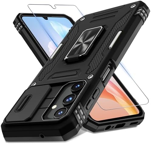 • DEERLAMN Case for Samsung Galaxy A15 5G with Slide Camera Cover+Screen Protector (1 Pack), Rotated Ring Kickstand Military Grade Shockproof Protective Cover-Black