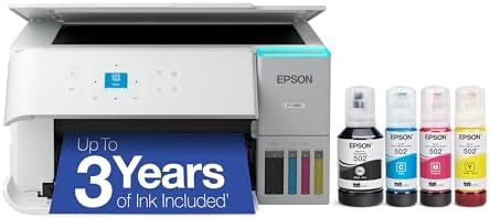 • Epson EcoTank ET-2980 Wireless All-in-One Color Supertank Printer with up to 3 Years of Ink, Refillable Tanks, Perfect for Home, 15 PPM, 1.44″ Color Screen, Auto 2-Sided Printing – White
