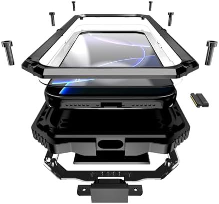 • Compatible with iPhone 12 Pro Max Metal Bumper Silicone Case Hybrid Military Shockproof Heavy Duty Rugged case Built-in Screen Protector Stand Cover for iPhone 12 Pro Max (Black)