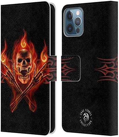 • Head Case Designs Officially Licensed Anne Stokes Hell Skull Fire Tribal Leather Wallet Case Compatible With Apple iPhone 12 / iPhone 12 Pro