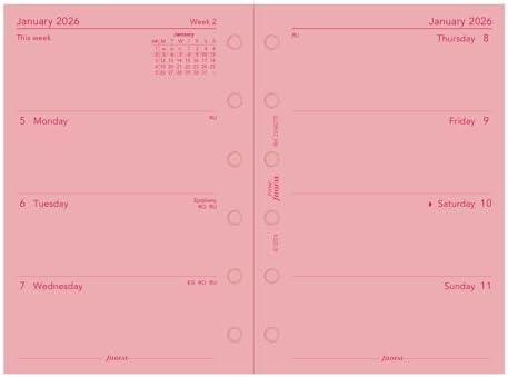 • Filofax Calendar Diary Refill, Pocket Size, Week-to-View, Pink Paper, Unruled, English, 2026 (C68278-26)