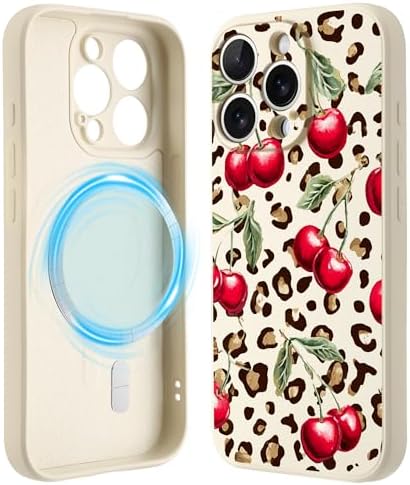 • Idocolors Case for iPhone 16 Pro 6.3″, Cherry Leopard Print Phone Case, Compatible with MagSafe, Silky-Soft Touch Liquid Silicone Phone Cover with Camera Lens Full Protection