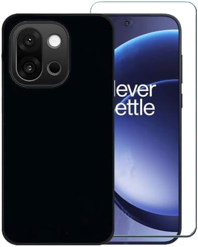 • for OnePlus 15 Phone Case with Screen Protector, Black Flexible Ultra Slim Thin TPU Shock Absorption Silicone Rubber Resilient Case Cover Compatible with OnePlus 15 PLK110 (6.78″ Smartphone)