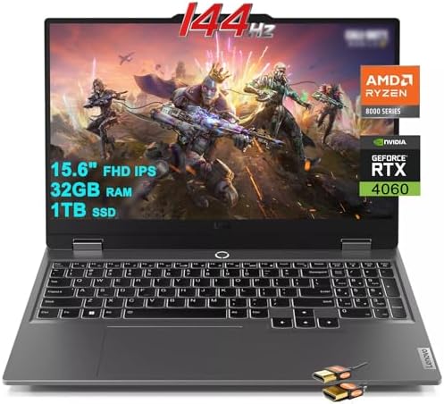• Lenovo LOQ Gaming Laptop 15.6″ FHD IPS 144Hz AMD Zen4 Octa-core Ryzen 7 8845HS (Beat i7-12700H) 32GB RAM 1TB SSD GeForce RTX 4060 8GB Graphic Backlit Nahimic Rapid Charge Pro Win11 Grey + HDMI Cable