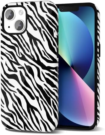 • Zebra Print Phone Case for iPhone 13/ iPhone 14, Girly Cute Zebra Case for Women Girls, Luxury Trendy Retro Fashion Animal Print Design, Aesthetic Pattern Hard Shell Plastic Cover, Black