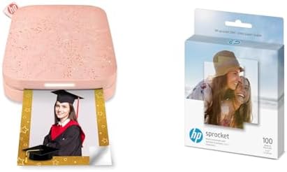 • HP Sprocket Portable Photo Printer (Blush Pink) Instantly Prints ZINK 2×3 Sticky-Backed Photos & 2×3 Premium Zink Photo Paper (100 Sheets) Compatible with Sprocket Portable Photo Printer