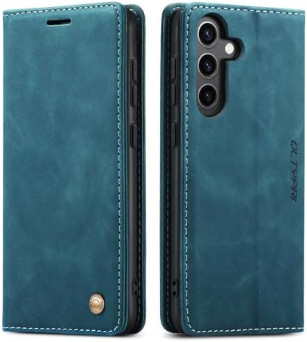 • QLTYPRI Case for Samsung Galaxy S24 5G, Vintage PU Leather Wallet Case Card Slot Kickstand Magnetic Closure Shockproof Flip Folio Case Cover for Galaxy S24 5G – Blue