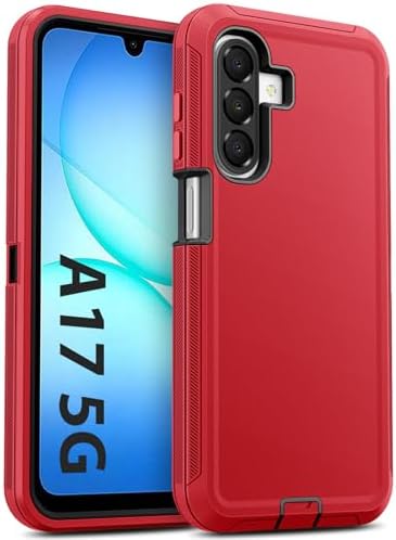 • Jelanry Case for Samsung Galaxy A17 5G, Heavy Duty & Rugged Protective Dual-Layer Shockproof Drop Protection with Port Anti-Dust/Scratch Matte Phone Cases Bumper Back Cover for Samsung A17 6.7?, Red