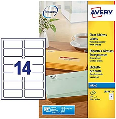 • Avery Printable, Customisable Address Mailing Labels, Inkjet Printers, 14 Labels per A4 Sheet, 140 Labels, Quickdry (J8563), White