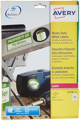 • Avery L4778-20 960x Ultra-Resistant Labels 45.7 x 21.2 mm White for Laser Printers