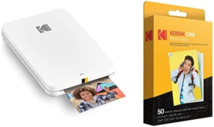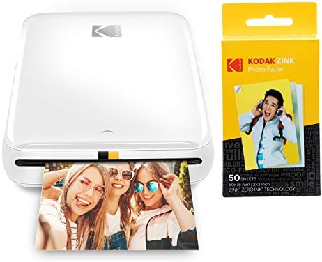 • KODAK Step Instant Printer | Bluetooth/NFC Wireless Photo Printer with ZINK Technology & KODAK App for iOS & Android (White) Prints 2×3 Inch Sticky-Back Photos + Kodak Zink Photo Paper – Pack of 50