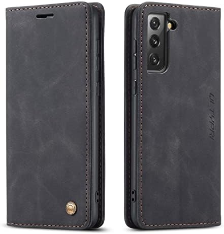 • QLTYPRI Case for Samsung Galaxy S21 5G, Vintage PU Leather Wallet Case Card Slot Kickstand Magnetic Closure Shockproof Flip Folio Case Cover for Samsung Galaxy S21 5G – Black