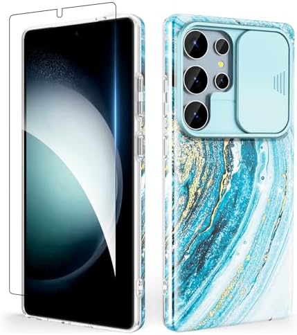 • SHEDEER for Samsung S25 Ultra Case with Slide Camera Cover + Screen Protector, Samsung Galaxy S25 Ultra Case Slim Fit Lightweight, Glossy Fade-Resistant Pattern Phone Cases S25 Ultra, Blue