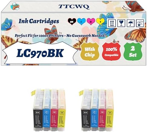 • Compatible for Brother LC970BK Ink Cartridges Work for Brother MFC-465CN DCP-157C MFC-5460CN DCP-235C FAX-1360 Printers (2 Set)