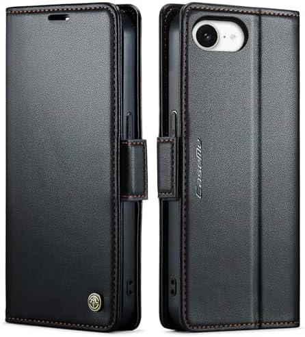 • QLTYPRI Wallet Case for iPhone 16e 6.1 inch, PU Leather Magnetic Flip Folio Cover with RFID Blocking Card Slots Kickstand Shockproof Protective Phone Case Cover – Black