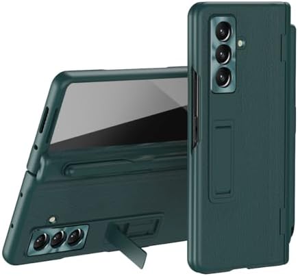 • Smartphone Flip Cover Slim Case Compatible with Samsung Galaxy Z Fold 7 S Pen Case Built-in Screen Protector and Magnetic Hinge Protection – Leather Folio Flip Cover with Kickstand for Z Fold 7(Green)
