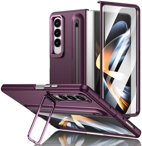 • Smartphone Flip Cover Camera Stand Compatible with Samsung Galaxy Z Fold 4 Case with Built-In New Compact S Pen Slot, Case with Screen Protector Folding Series Protective Cover W/Regular Stylus(Red)