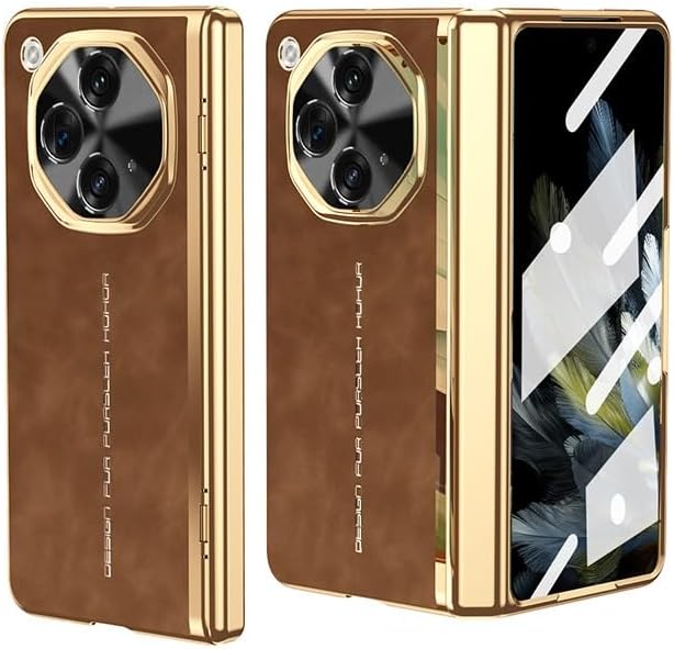 • Smartphone Flip Cases Compatible with Oneplus Open Case with Built-in Glass Screen Protector,[Luxury Plating Folding & Leather][Full Body Hinge Protection] Shookproof Protective Phone case(Brown)