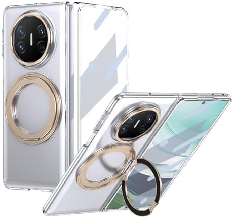 • Smartphone Flip Cases Compatible with Huawei Mate X3 Case with Screen Protector, 360°Rotatable Ring Kickstand, Military Grade Shockproof Translucent Protective Case, Crystal Clear(Golden)