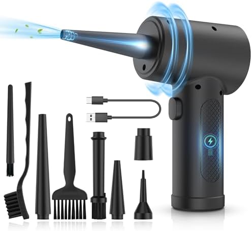 • Electric Dust Blower Compressed Air Spray for PC Cleaning Kit, 3-Speed 91000 rpm Compressed Air Duster, USB Rechargeable Compressed Air Spray, PC Cleaning Set for PC, Electronics, Sofa, Car