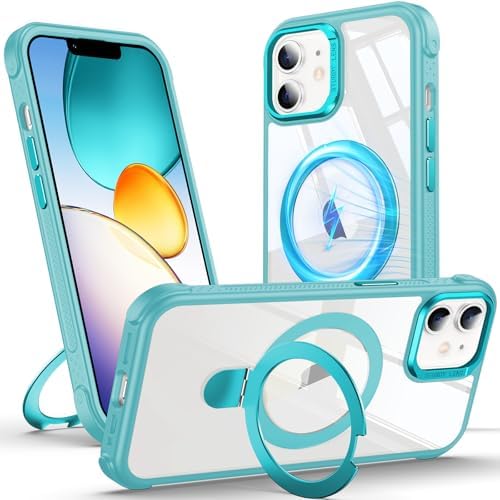 • Anqrp O-Ring Magnetic KickStand Clear Case for iPhone 12/12 Pro, Compatible with Mag-Safe, Military-Grade Reinforced 4-Corners Anti-Yellowing Transparent Phone Case Cover for iPhone 12/12 Pro, Teal