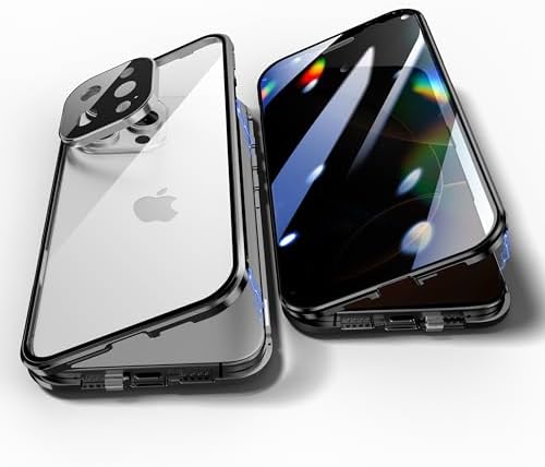• Anti Peeping Case for iPhone 16 Pro Max, Anti SPY Screen, Anti Peep Magnetic Adsorption Metal Bumper with Lens Protector 360 Degree Protection Front Privacy Tempered Glass Back Clear Cover (Black)