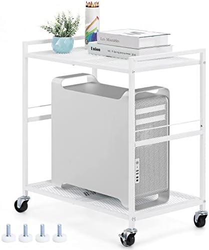 Price: (as of – Details) Computer Tower Stand White PC Tower Stand 2 Tier CPU Holder Stand with Wheels Metal Mobile Computer Tower Cart Rolling Printer Cart for Fax Home [More]
