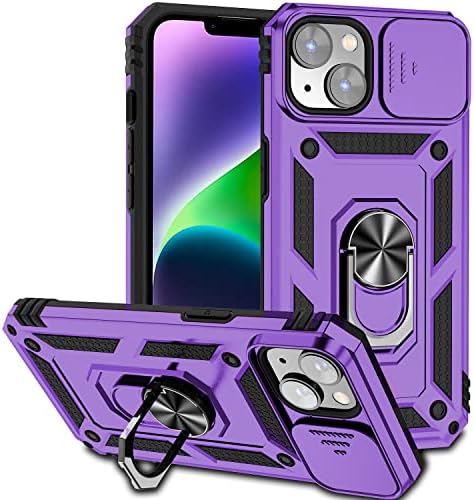 • Hitaoyou iPhone 14 Plus Case – Military Grade Shockproof with Camera Cover, Kickstand & Magnetic Car Mount Holder (Dark Purple)