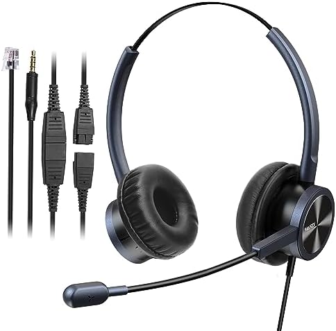 • MAIRDI Telephone Headset with Microphone Noise Canceling, Binaural with RJ9 Jack & 3.5mm Connector for Office Call Center Deskphone Cell Phone PC Laptop, Work for Cisco 7941 7965 6941 7861 8811 8961