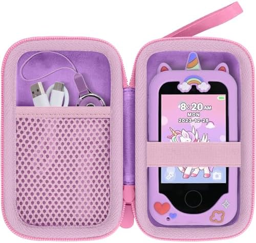 • Kids Smart Phone Case Compatible with Luoba/Luyiilo/KOKODI/WEOLULI/DIGIGOOD/Joozfee/Luyiilo Kids Smart Phone Toys,Case for Mini Smart Phone Toys with 2.8″ Touchscreen (Purple Case,Pink Zipper)